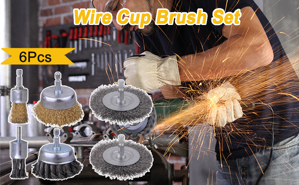 6 PCS Brass Coated Wire Brush Wheel Wire Brushes Drill Bit Set